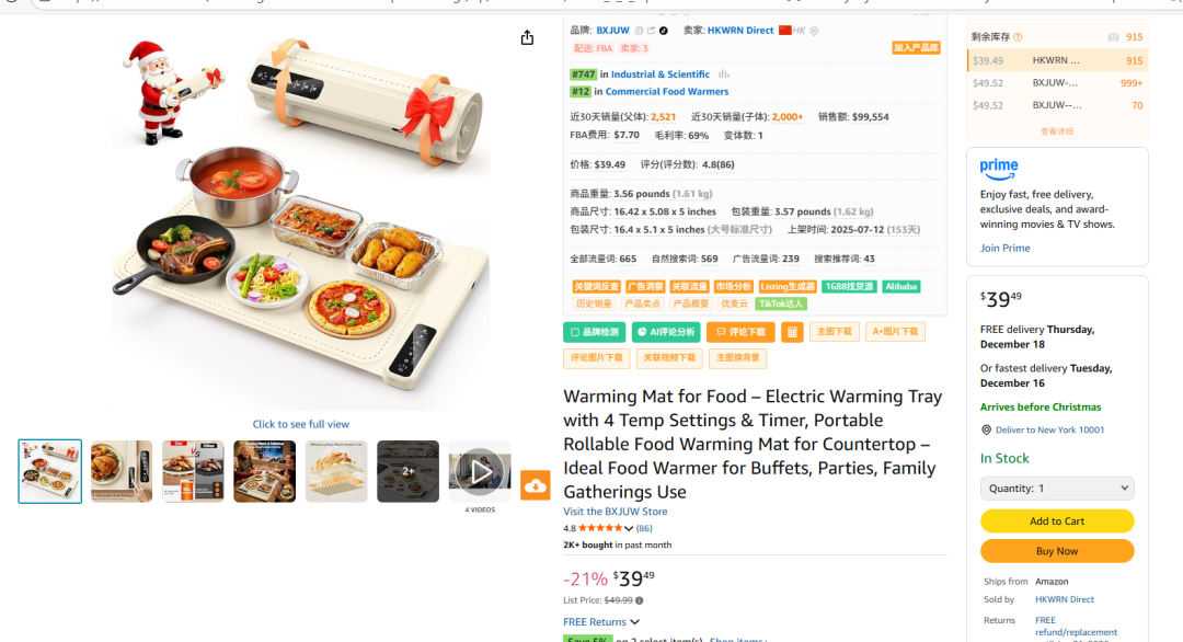 来看看亚马逊 food warming mat
